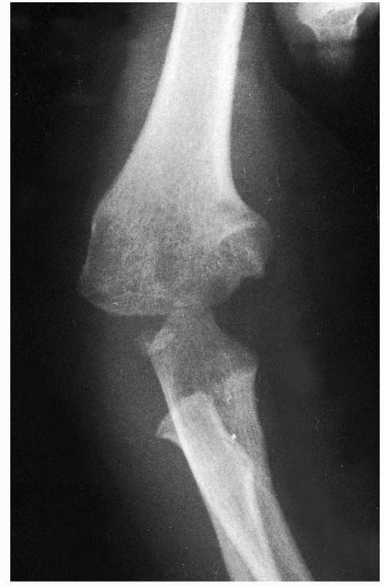 osteonecrosis occurred in six. Arthrosis of the elbow was found in