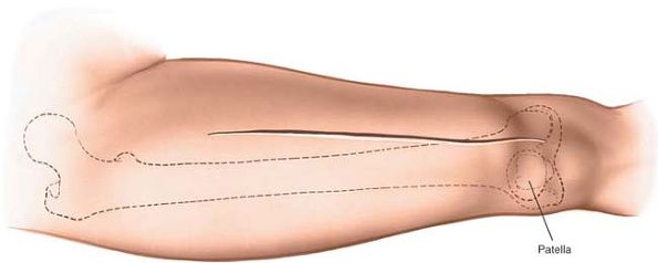 Figure 9-6 The incision may be extended distally to expose the entire shaft of the femur.