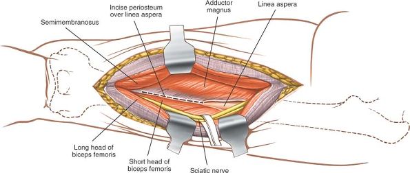 can expose the entire length of the femur. Because it follows the