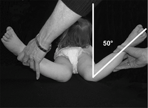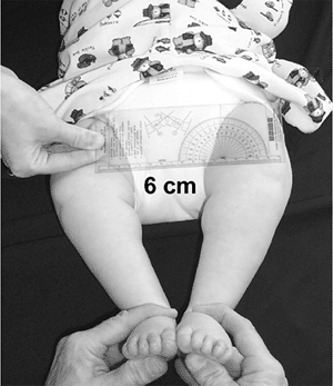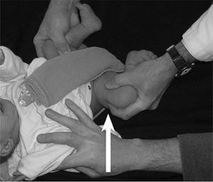 Concerned that the baby might have a dislocated hip, the pediatrician