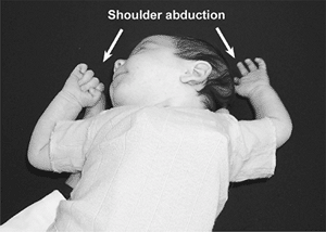 bilaterally, and internal rotation to the point where the thumbs touch