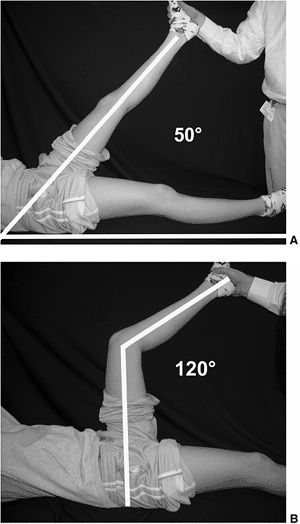 to 90 degrees in neutral rotation, with the elbow flexed to 90 degrees.