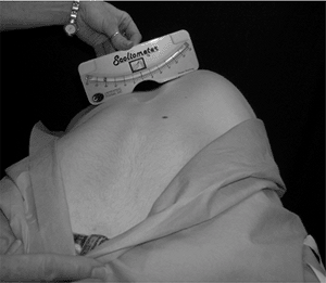 with the other hand. The amount of glenohumeral translation is measured