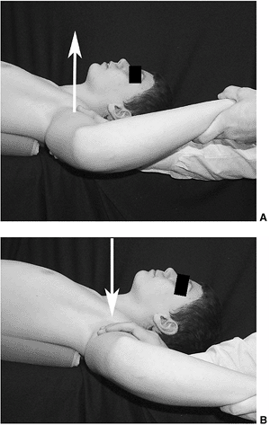 external rotation of the shoulder (Fig. 5.40B). If the apprehension is relieved with this maneuver, it is termed a positive relocation test.