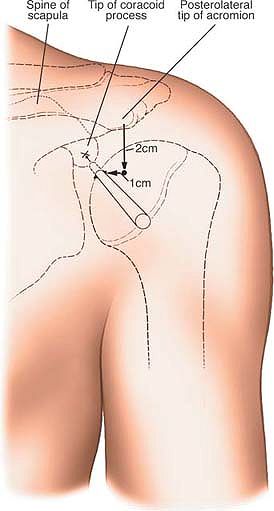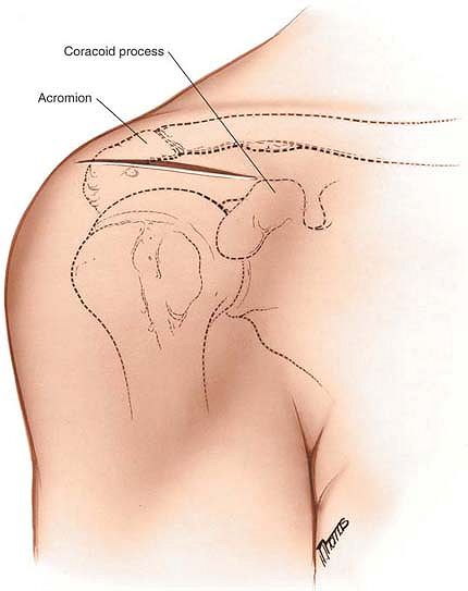 superior and lateral to the level of the coracoid process (see Figs. 1-13, 1-21, and 1-25).