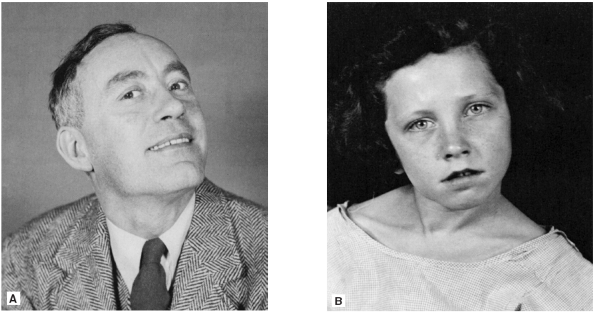 FIGURE 15.4 • Two examples (A and B) of cervical dystonia (spasmodic torticollis).