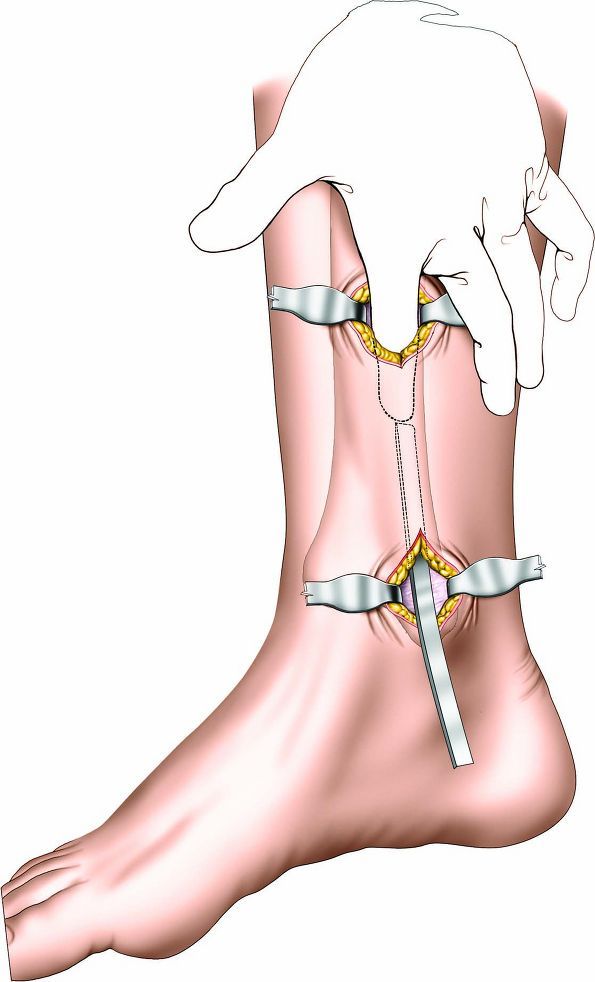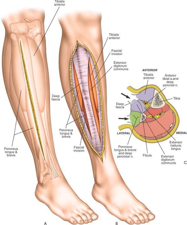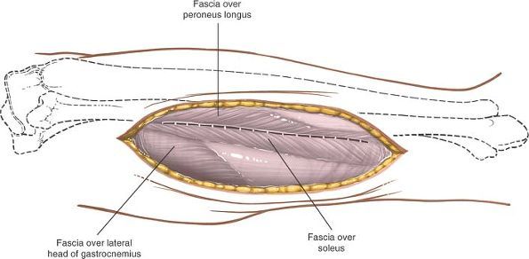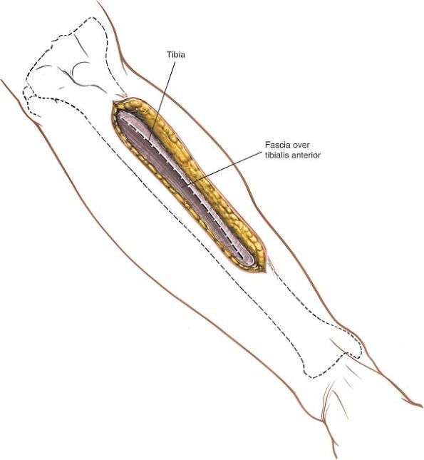 subcutaneous tissue and incise the fascia overlying the tibialis