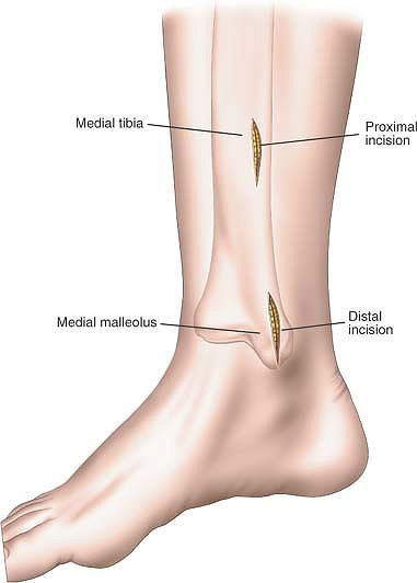 border of the tibia (Fig. 11-2). The exact length of the incision depends on the pathology to be treated and the implant to be used.