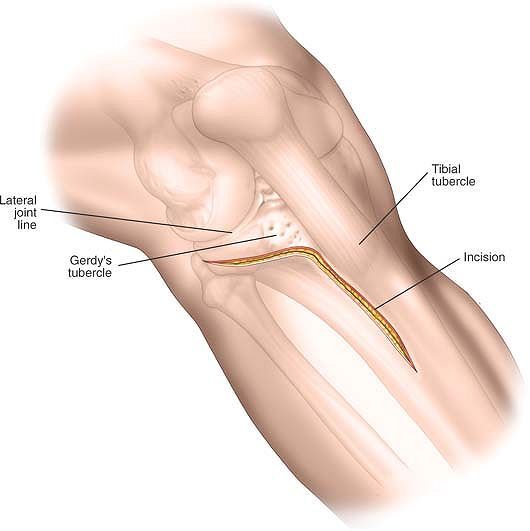 patella tendon. Curve the incision anteriorly over Gerdy’s tubercle and