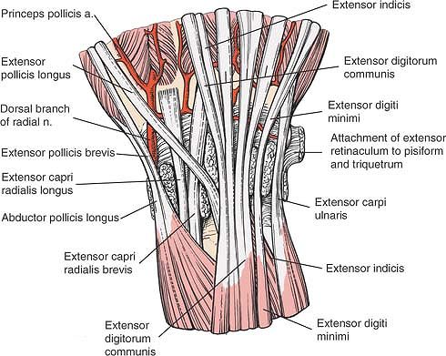 the six compartments on the dorsal aspect of the wrist (Fig. 5-3).
