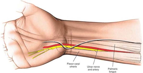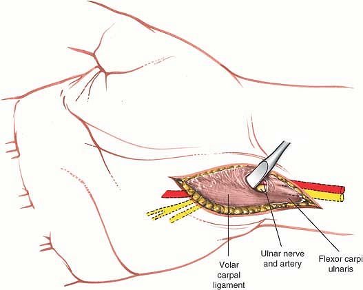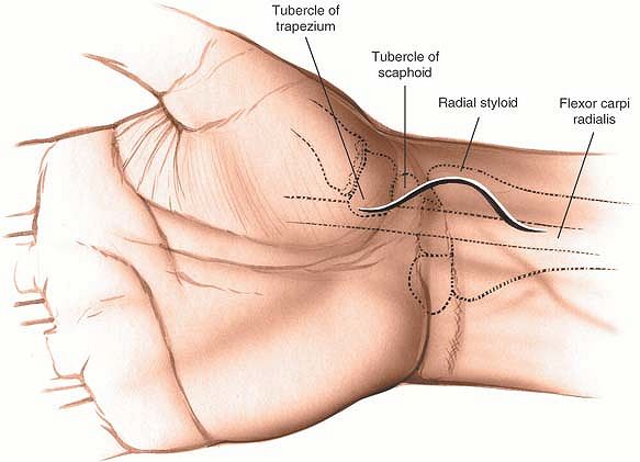 ulnar styloids. The incision begins 3 cm proximal to the wrist joint