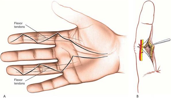 and chronic suppurative processes in the fingers, hands, and forearm,
