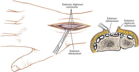 retinaculum by sharp dissection in an ulnar direction to deroof
