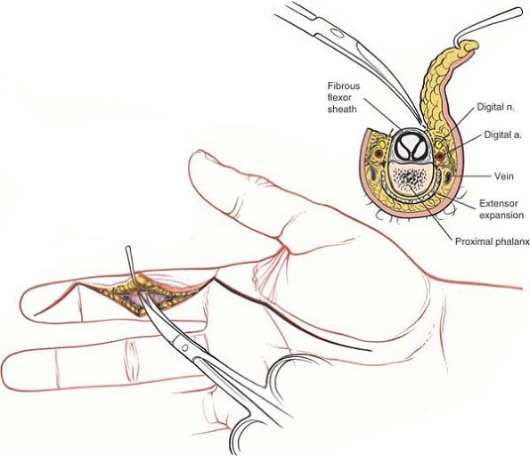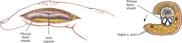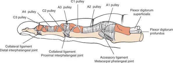 proximal phalanx. The hood is anchored firmly on each side to the volar