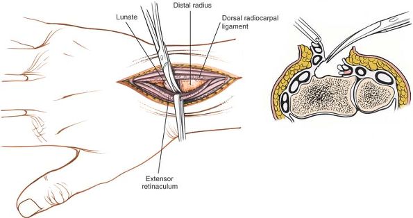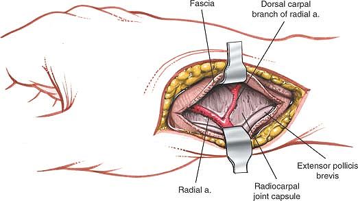 also allows access to the dorsal aspect of the wrist itself, the dorsal