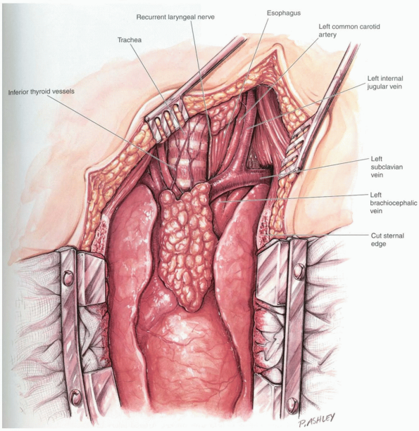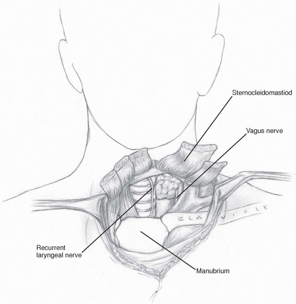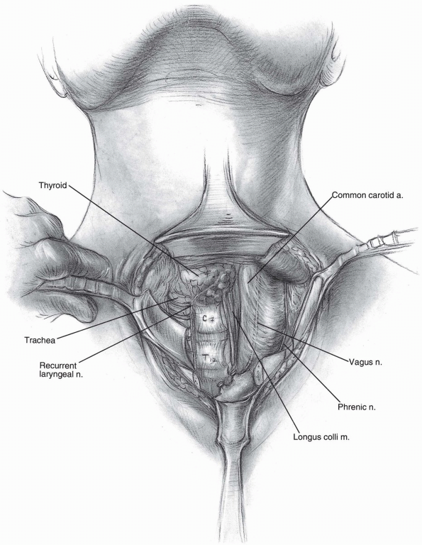 developed and the pharynx is identified and recurrent laryngeal nerve