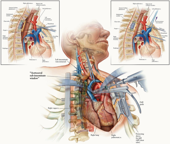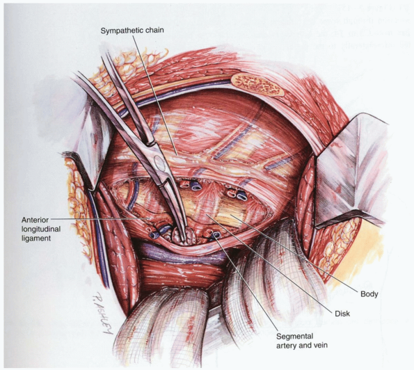 thoracic spine via an “interaortocaval subinnominate window.” Case