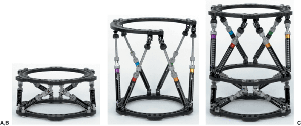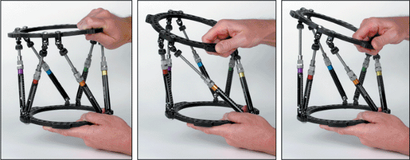 Figure 30.2. A Spatial Frame may be acutely adjusted by hand with all struts in the unlocked position. (Copyright © J. Charles Taylor.)