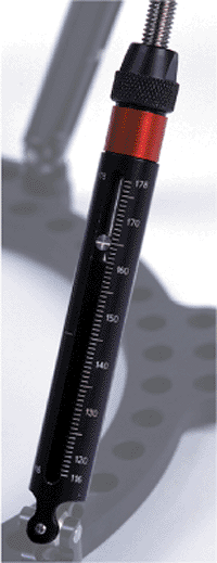 Fast Fx struts are free to slide in the unlocked position for acute fracture reduction. The locking sleeve is advanced to lock the strut. The locked strut can still be gradually adjusted by rotation of the nosepiece. (Copyright © J. Charles Taylor.) |