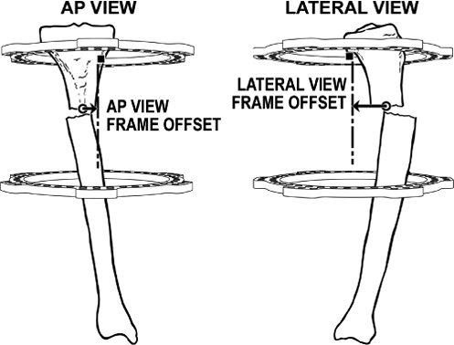 Spatial Frames may be tapered and eccentric. Sufficient soft-tissue clearance should be allowed to prevent frame impingement. (Copyright © J. Charles Taylor.) |