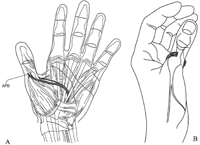 joint, to the tendon of attachment of the abductor pollicis brevis.