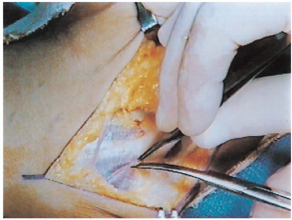 FIGURE 9-9. Division of fascia surrounding ulnar nerve.