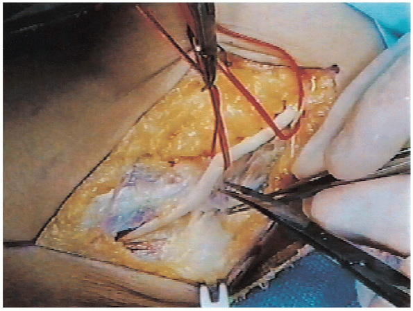 FIGURE 9-8. Exposure of ulnar nerve proximal to epicondyle.