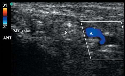 malleolus. Ant, anterior; N, posterior tibial nerve; A, posterior