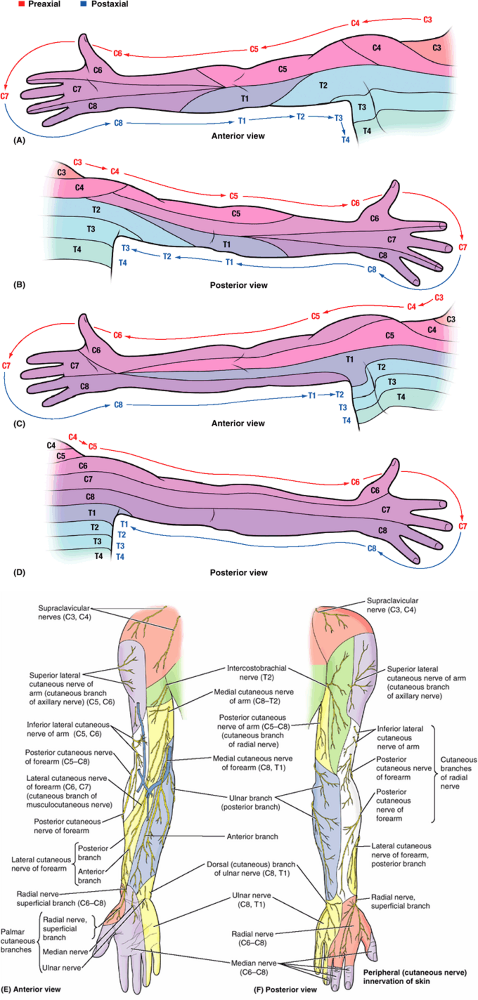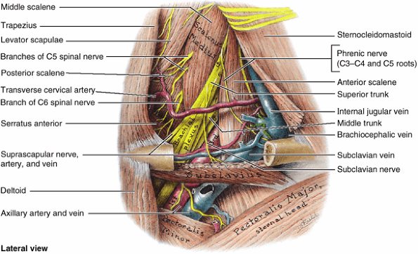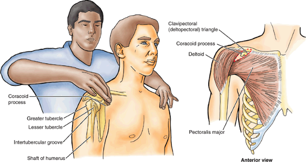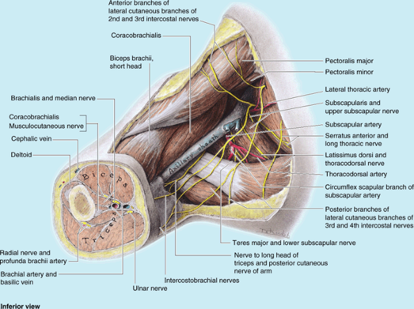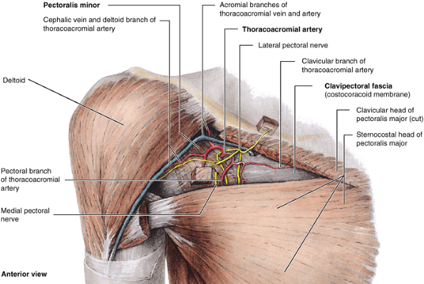 and back) and lower lateral neck. It includes the pectoral, scapular,