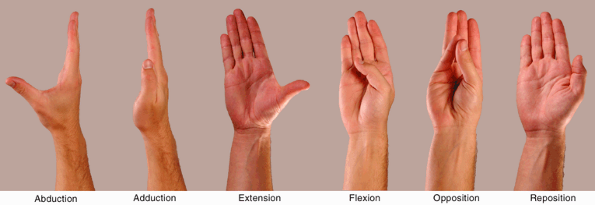 dorsum of hand, and fingers (including an opposable thumb) and is