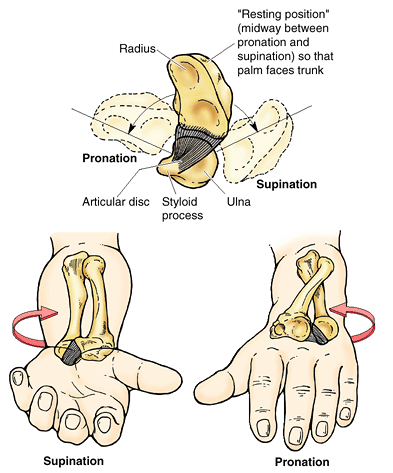 mobile joint, (3) paired bones of the forearm are able to be moved