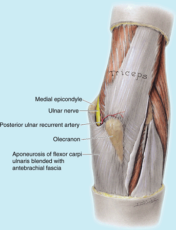 the olecranon fossa. Just distal to the trochlea of the humerus is the